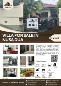 The villa is situated at Global Village C9, Taman Mumbul, Nusa Dua area, situated in a 24/7 guarded resort with a one entrance/exit gate and shared swimming pool.