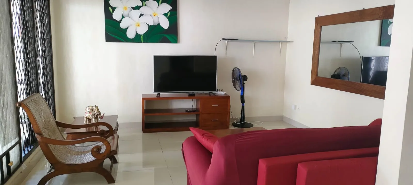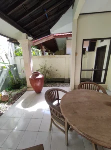 The full furnished villa has 3 bedrooms with AC, 3 bathrooms, a wide living room, equipped kitchen and a private parking, electricity 4400 kwh. The area is very clean and save, you will feel being home on your holiday and enjoying your stay in a beautiful Bali.